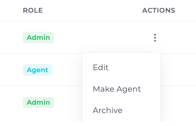 To invite a new user to the team, hit the "Invite agent" button at the bottom of the list.