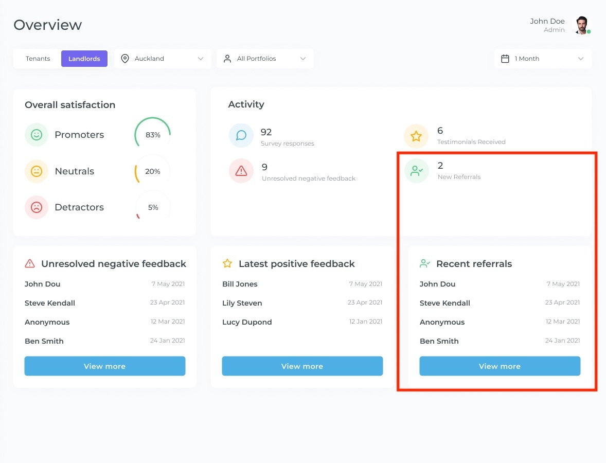 The most recent referrals will be prominently displayed on your dashboard for quick access. You'll also find a dedicated "Referrals" page in the left-hand menu.