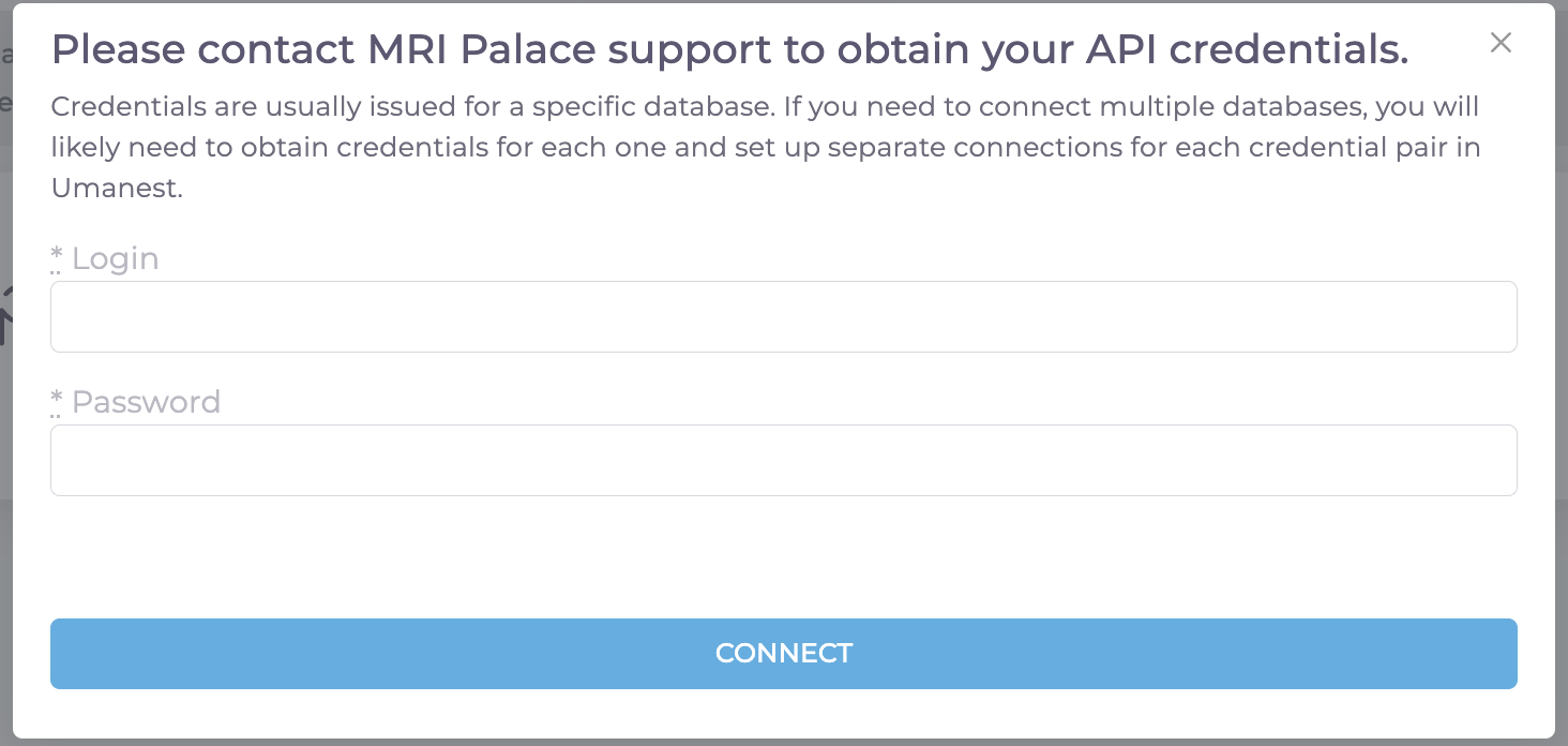 - Go back to Umanest Integrations and paste the credentials for Palace.