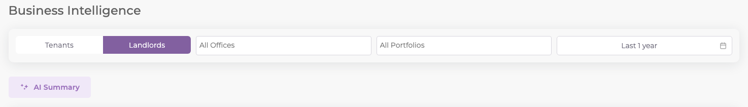 Customise your Insights: Choose whether to analyse Landlords or Tenants, then narrow results further by selecting specific offices or Property Managers for more targeted insights.