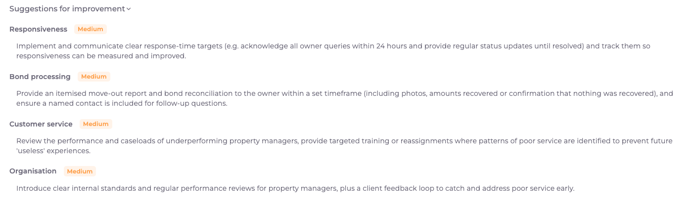 This section translates negative or mixed feedback into specific, actionable recommendations.